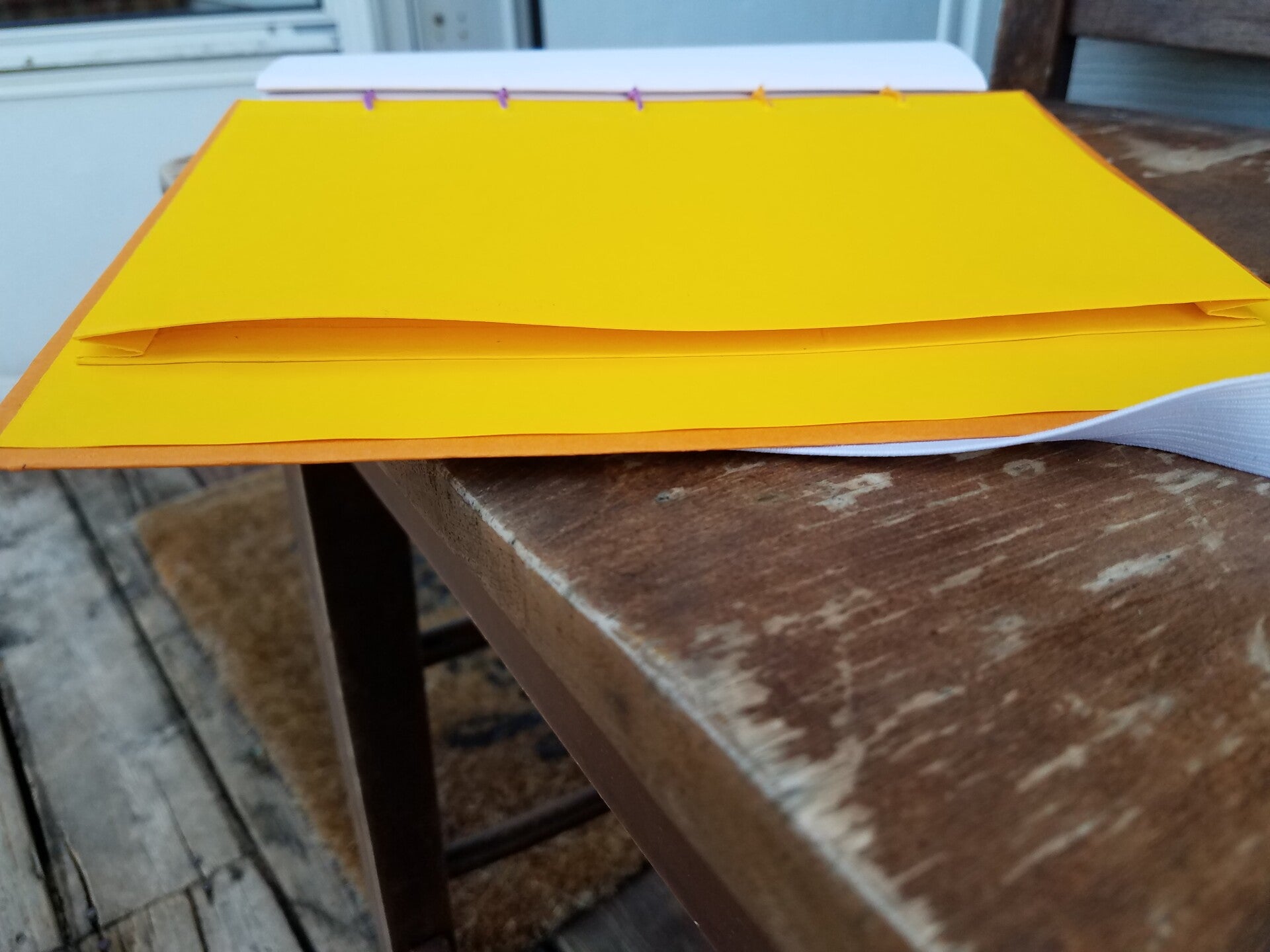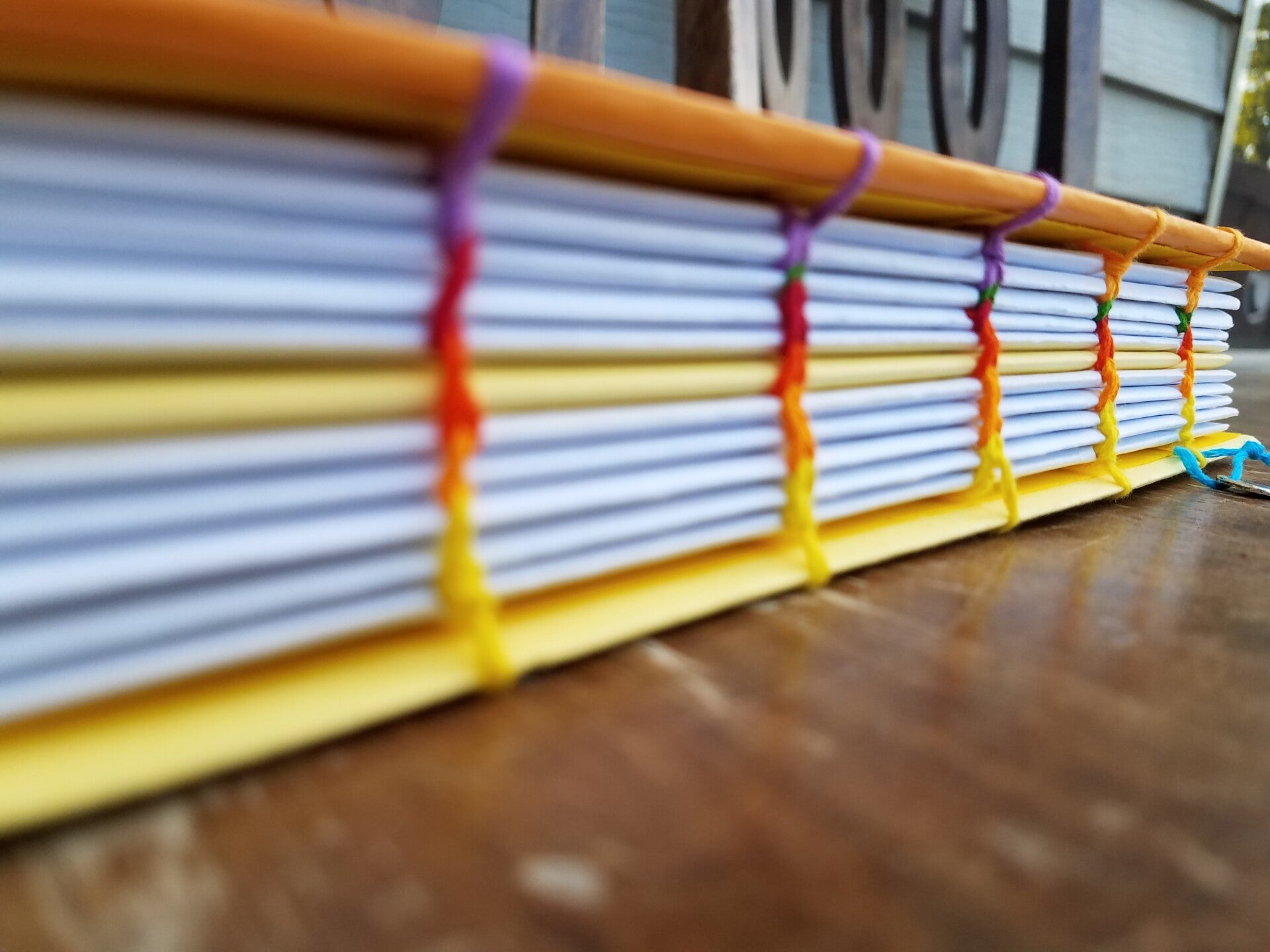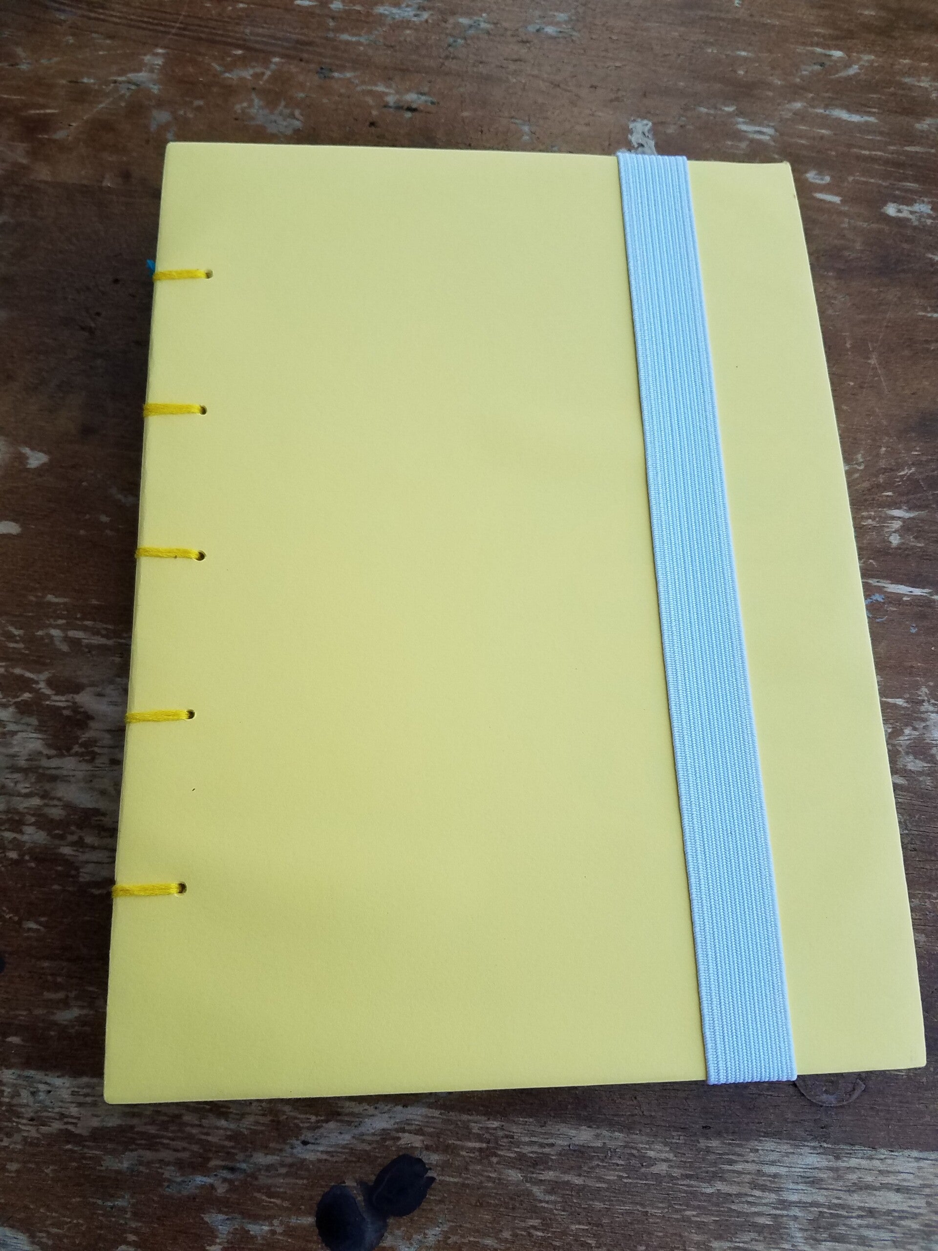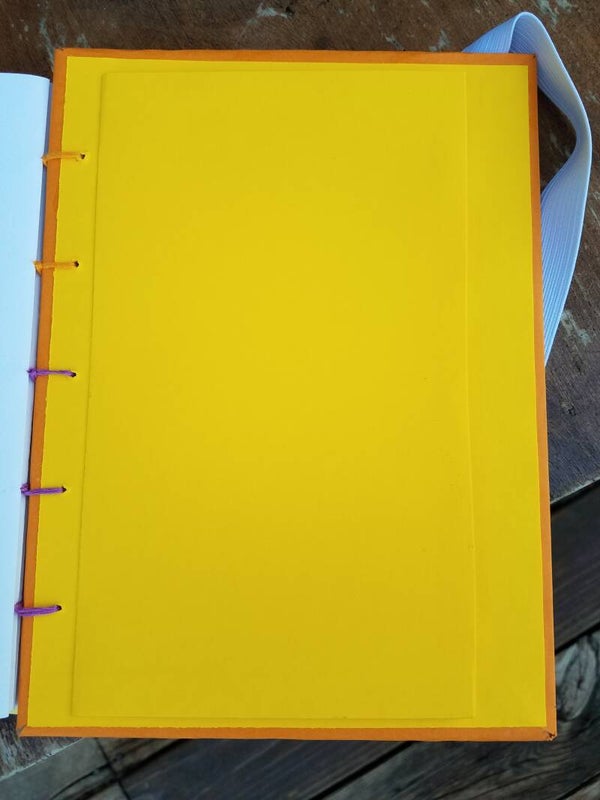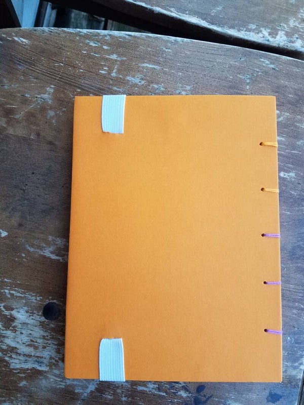 made with recycled copy paperStitched with Cotton Floss in the Ethiopian coptic Stitch320 pagesback pocketwide elastic closureplain cardstock cover so you can draw your own design9 1/2in x 7